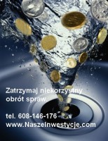 | Kupię zadłużone spółki z o.o. z zadłużeniem wobec ZUS, US ,dostawców krajowych i zagranicznych, spółki w upadłości , z zagubionym leasingiem/kredytem/ majątkiem i dokumentacją , spółki uśpione , z niskim kapitałem, spółki bez zadłużenia, absolutnie każdą inwestycjaniezalezna@gmail.com www.naszeinwestycje.com tel. 608-146-176 |